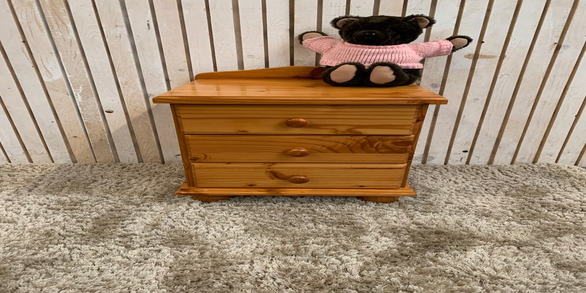 This dark-stained chest of drawers is a stylish and practical addition to any home. With three large drawers for storage, it offers plenty of space for organizing clothes, accessories, or any other items. The chest stands at a height of 96.5cm, with a length of 110cm and a width of 51cm, providing ample storage space without taking up too much room. The rich brown colour adds a touch of elegance to the piece, making it a versatile option for any bedroom or living space.