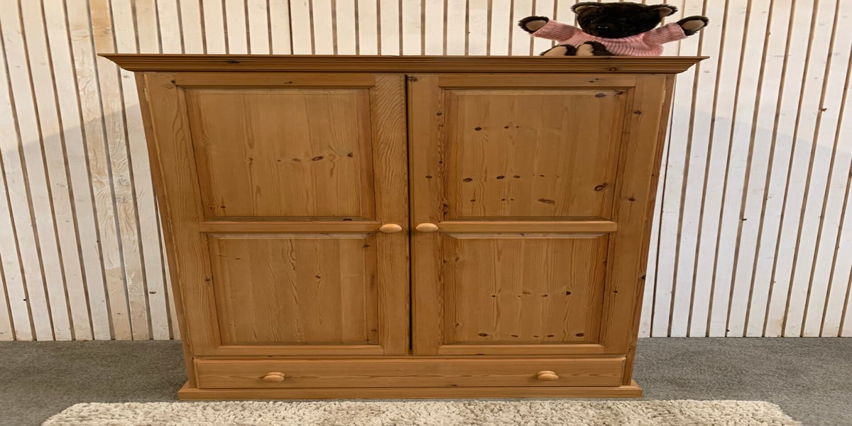 Solid Pine Wardrobe Full Hanging with 2 Door and Drawer at the bottom.