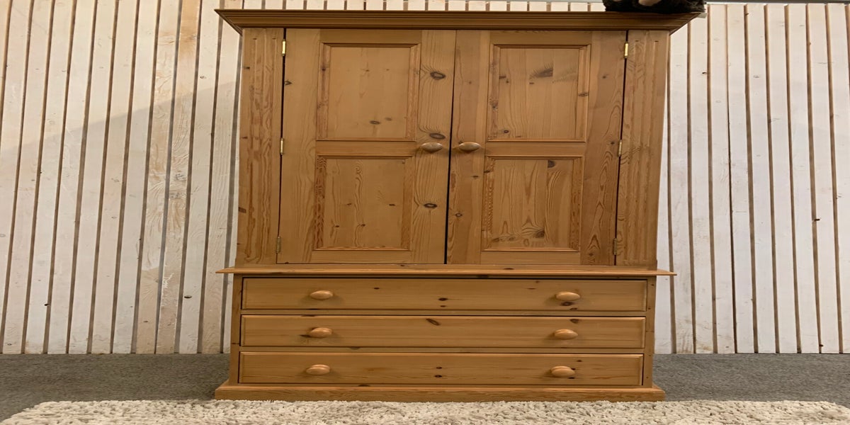 Solid Pine Wardrobe with 2 Doors 3 Drawers and Full Hanging Space.