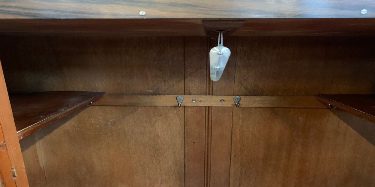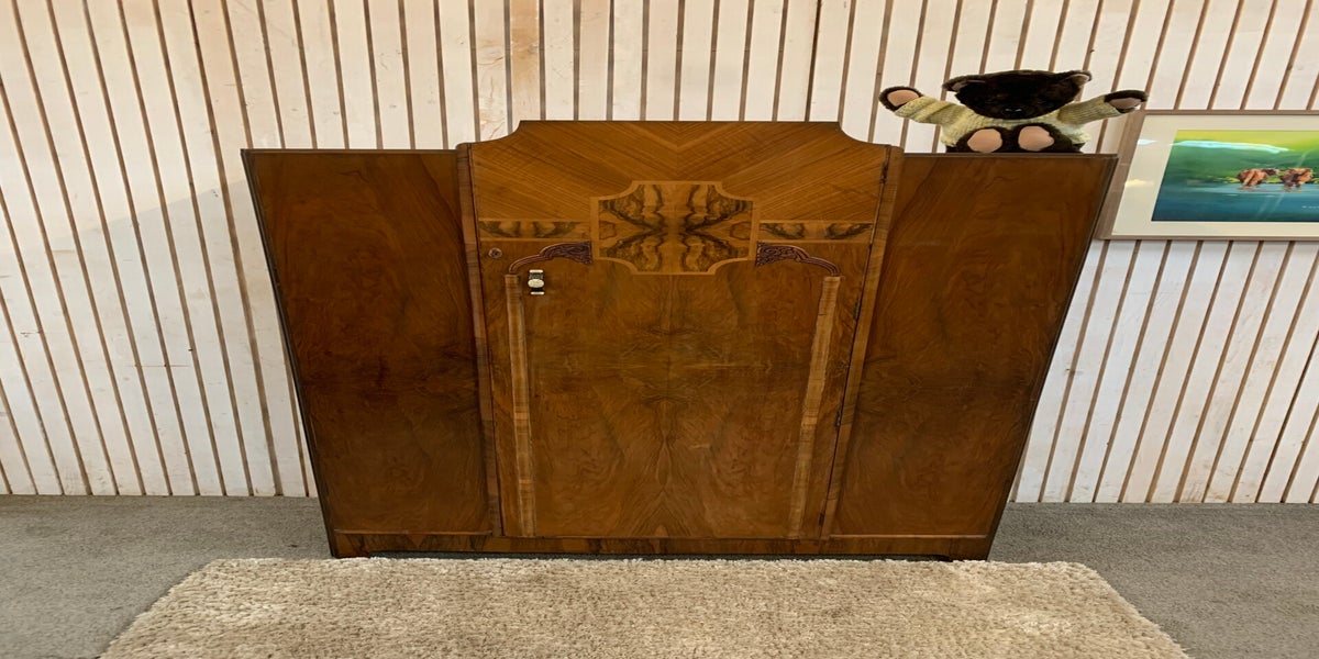 Vintage walnut-veneered wardrobe in Art Deco style, featuring a single door