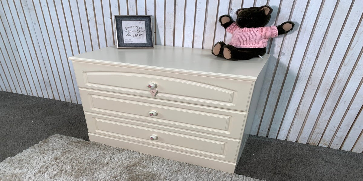 Chest of 3 Drawer in Cream With Ceramic Knobs.