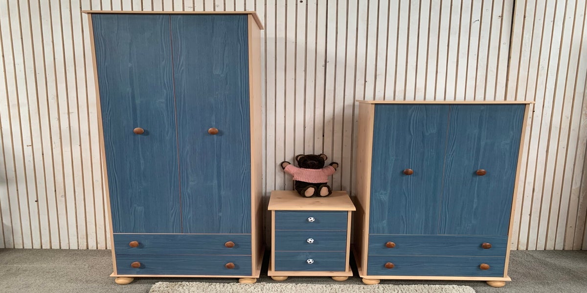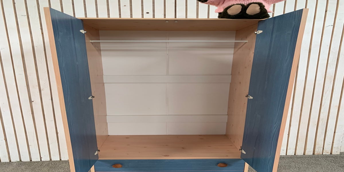Children's Wardrobes with 2 drawers, Full Hanging Space, Blue-fronted.
