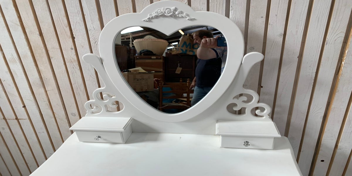 The White IKEA HEMNES dressing table with mirror and stool is a modern and stylish addition to any bedroom. Made from light wood with a chrome handle finish, this rectangle-shaped dressing table features three shelves, a sliding door mechanism, and a smooth finish. The table comes with a mirror and stool, making it a functional and convenient piece of furniture. With its sleek design and brand reliability, this dressing table is a must-have for adults looking to update their bedroom decor with a high-quality and stylish item.(616) or go to flaxbyfurnitureemporium . com For all available stock