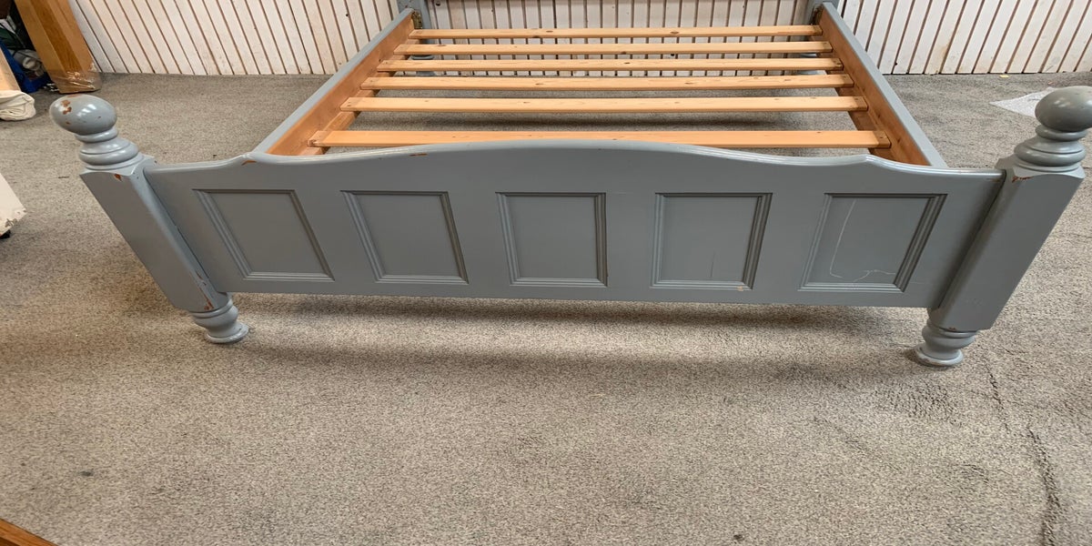 This 4ft 6" bed frame is made of metal with a stylish copper effect finish, perfect for adding a touch of sophistication to any bedroom. The side rails and lats provide support and stability for a comfortable night's sleep. Compatible with a double mattress, this bed frame is ideal for adults looking for a durable and stylish furniture piece to enhance their bedroom decor.(663)