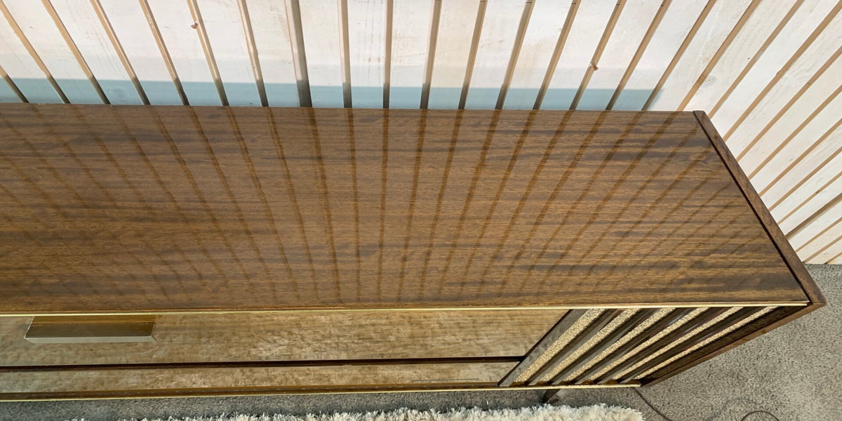 The Vintage G.E.C. Stereogram with Radio and Turntable (Model G979) is a rare and sought-after piece of British craftsmanship. This unique audio-visual device combines the functionality of a radio, turntable, and stereogram in one compact package. Made by the reputable brand G.E.C in the United Kingdom, this vintage piece offers a nostalgic glimpse into the sound and vision of yesteryears, making it a valuable collector's item for enthusiasts of vintage audio technology. We have had both the stereo and the turntable working, they do need rewiring to modern twin and earth standard.(332)