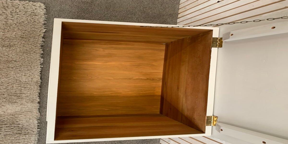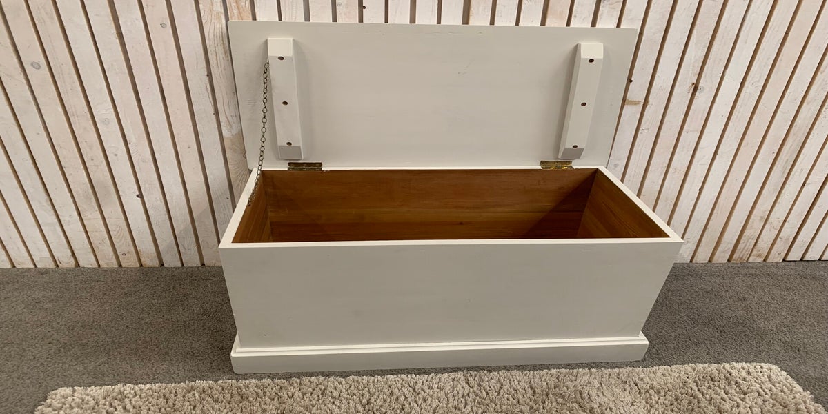 White Wooden Blanket Box with brass Handels on the side H51 W87 D49