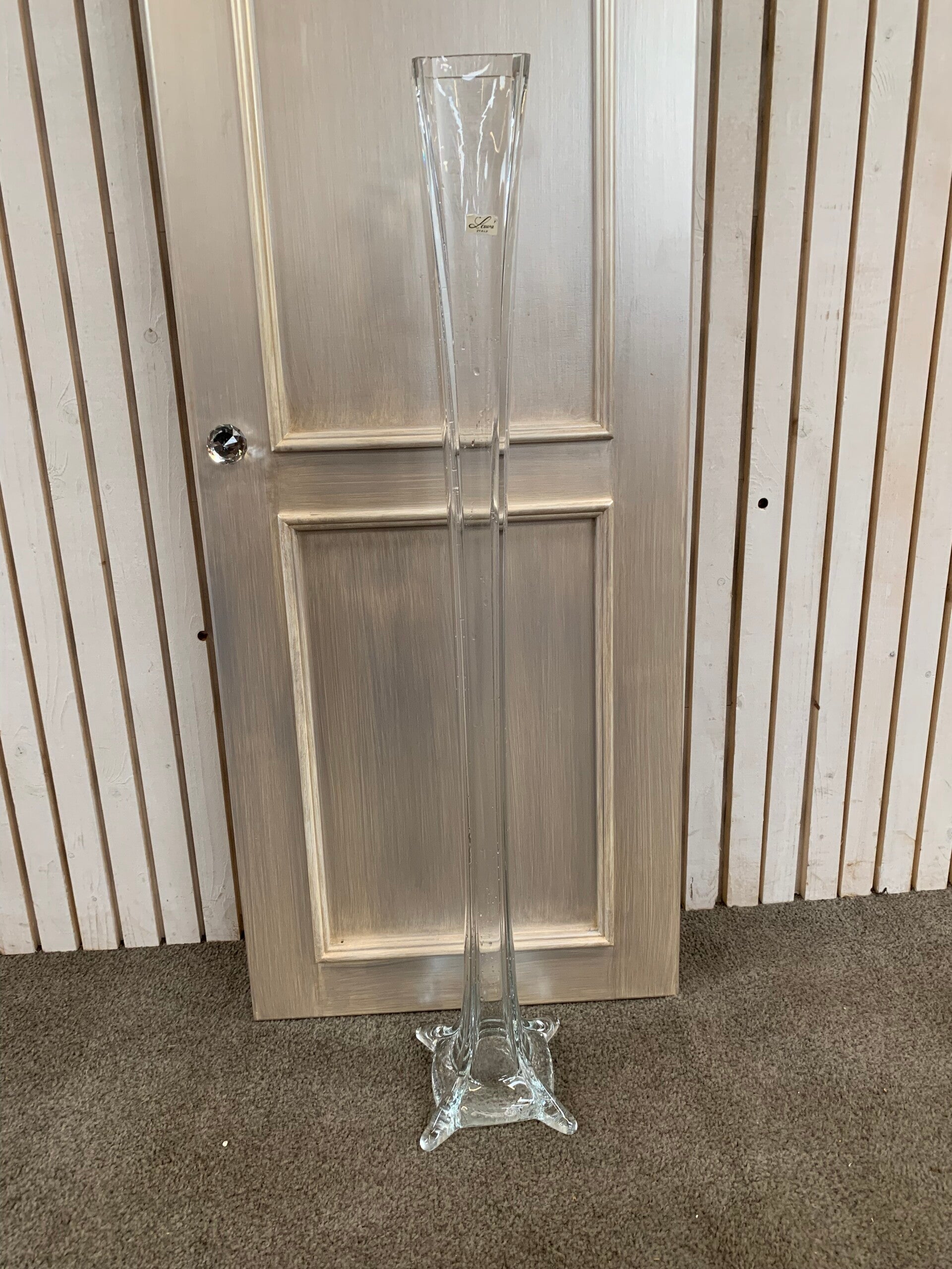 This is a Lcuira Italy tall glass vase measuring 100cm in height. Made from glass, it is designed for home décor, specifically as a vase. Was £45 now just £18