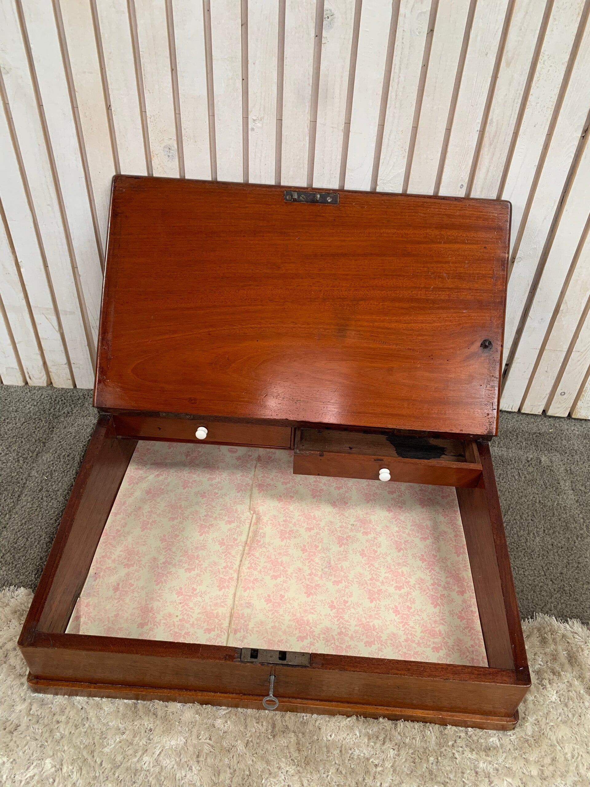 Antique Victorian writing desk with two small Drawers , sloped design,