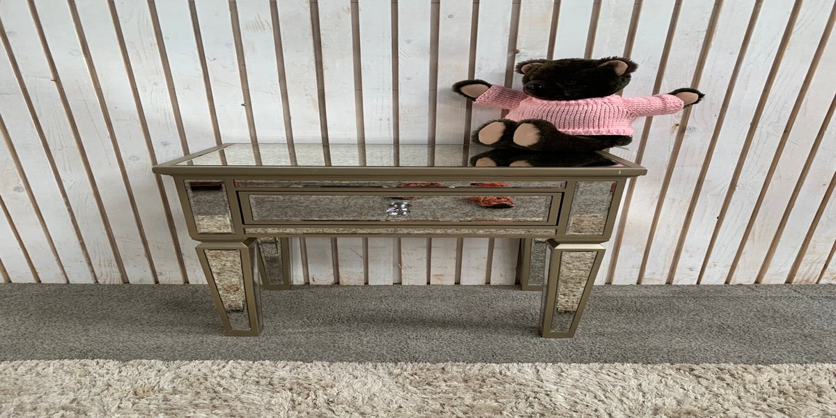 Mirrored console table with a drawer (there is a crack in the drawer).