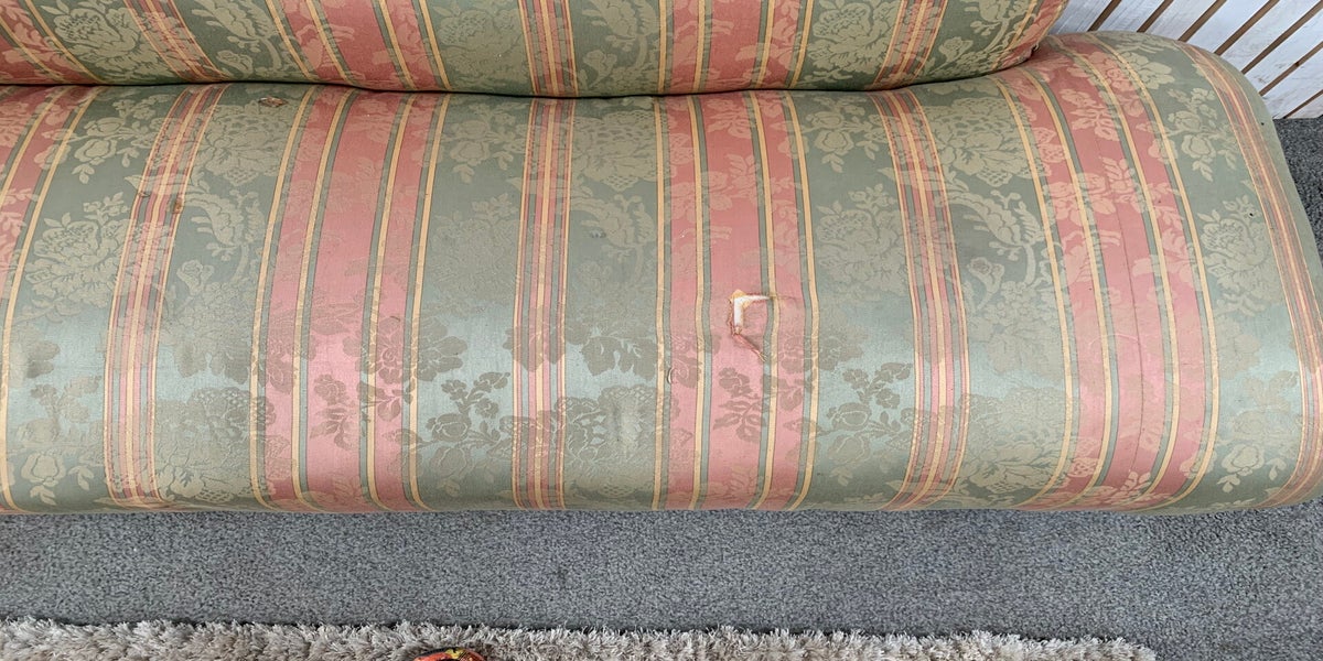 An upholstered Edwardian chaise longue project needs reupholstering.