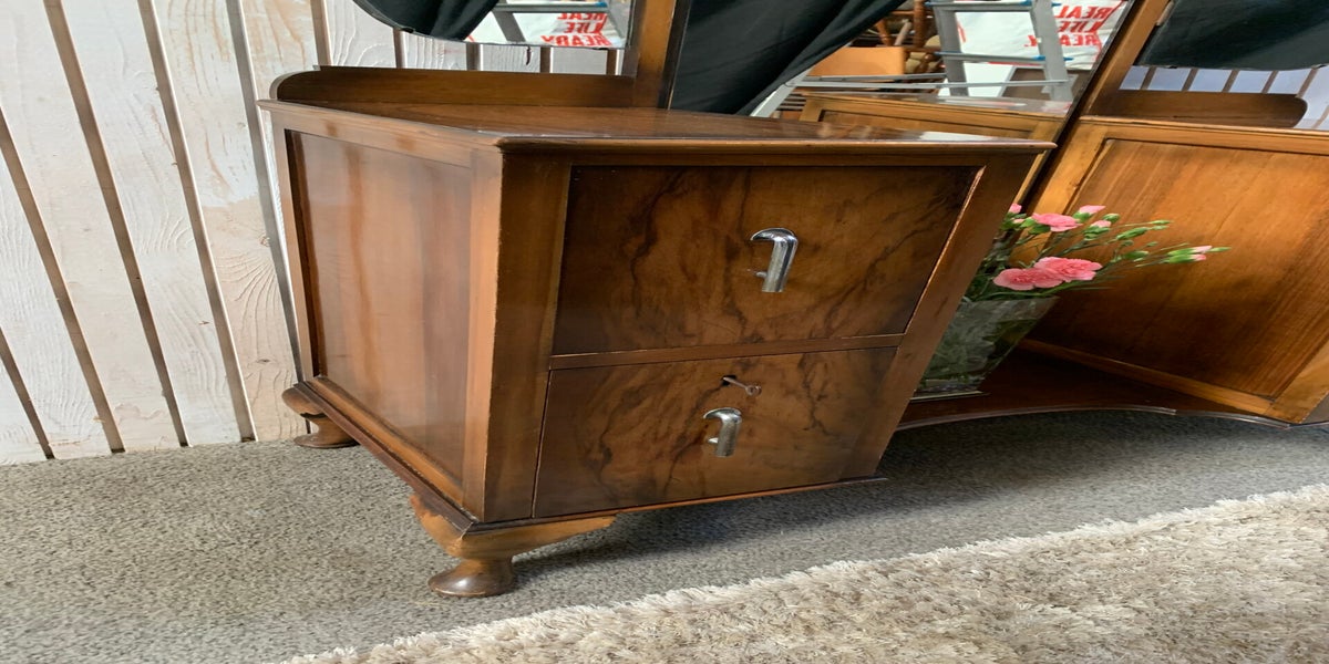 Vintage Burr Walnut Vanity Dressing Table with 3 Mirrors and 4Drawers.