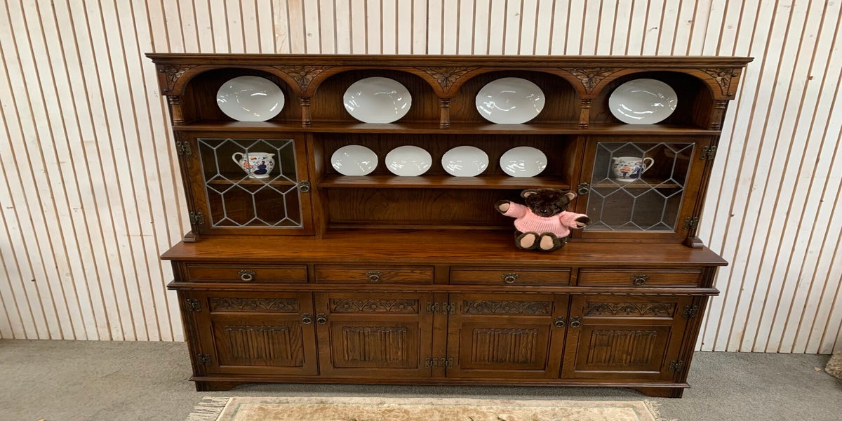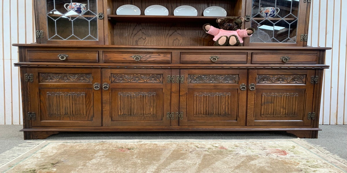 The Old Charm Sovereign dresser sideboard with a light oak finish is a stylish and elegant piece of furnitureproduced by Wood Bros.