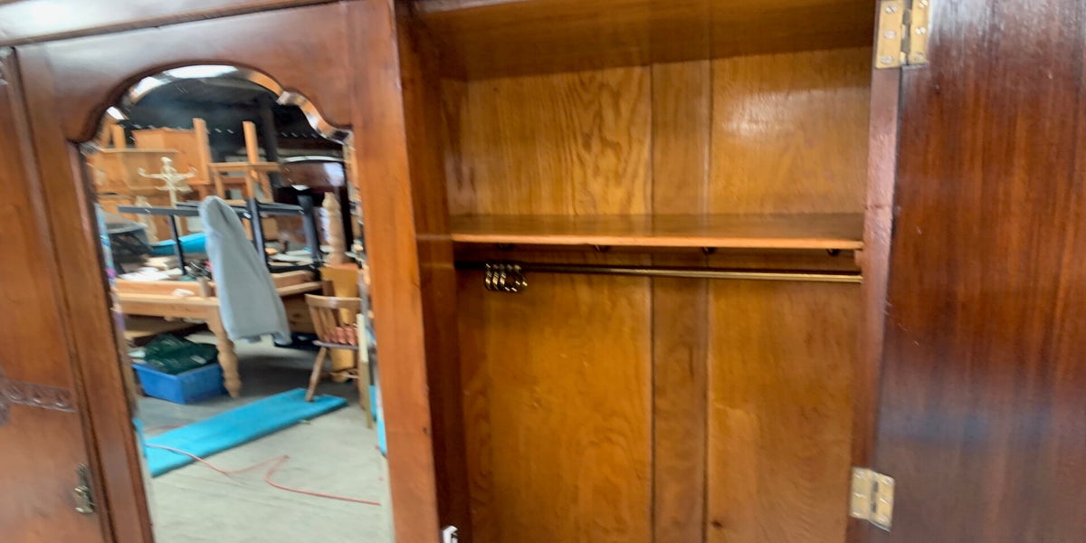 Embrace the charm of the Edwardian era with this antique mahogany triple wardrobe, a piece that exudes timeless elegance. With a height of 195cm, width of 54cm, and length of 134cm, it is crafted to offer ample storage while fitting gracefully into your room. The mirroring feature not only adds to its classic finish but also serves as a practical element for daily use.This wardrobe showcases the rich patina of mahogany woodwork, complemented by matching handles that maintain the piece's authentic appeal. Whether as a statement piece or a functional addition to your storage solutions, this triple wardrobe combines the allure of antique furniture with the practicality needed for today's homes.(311)