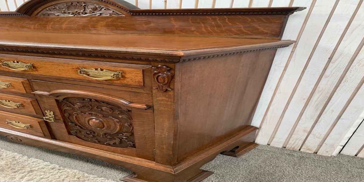 Edwardian carved oak sideboard with 6 drawers and 2 doors.